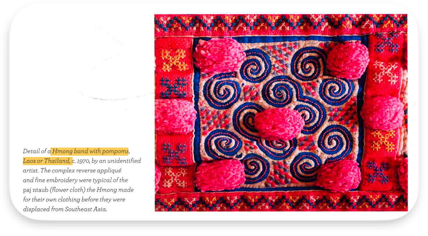 In Beverly Gordon's book, the Chinese ethnic minorities mentioned most, besides Tibetans (mainly Ladakh Tibetans from the Kashmir region of India), are the Hmong.